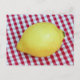 Fresh lemon on a red gingham tablecloth.