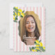 Celebrate your achievement with this fresh lemon graduation photo announcement featuring soft pink stripes, bright citrus illustrations, and a modern elegant layout. Perfect for sharing your milestone in a stylish way, this design follows trending fruity, pastel, and floral-inspired graduation announcements. Easily personalize with your photo and details for a cheerful and memorable keepsake. Original artwork by Caroline Bonne Muller.
