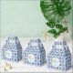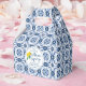 A pretty lemon bridal shower favour box decorated with lemons and Italian blue tile, with the words, she found her main squeeze. Perfect for your Italian blue tile lemon bridal shower guests. Designed for you by Blackberry Boulevard.