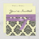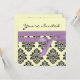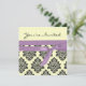 design has an elegant black damask Pattern against a light lemon background with a faux purple ribbon. The reverse of the card has a cute little rhyme. All text is fully customisable. you can also alter the background colour of the card by clicking on 'customise' and then 'colour'. invitation is shown here in a linen finish. other finishes are available!