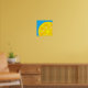 Modern, yellow, lemon slice on a bright blue background. Super cute in any kitchen - pair along with the other fruit posters to make a statement. Easily change the background to match your decor if you like.