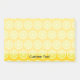 Round slice of lemon. Seamless pattern. Custom background colour. Custom text.