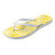 This fun pair of flip flops features large and small bright yellow lemon slices.