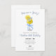 These adorable watercolor birthday invites features a watercolor portrait of a lemon spritz with a blue ribbon bow tied around the stem with the caption "pass me a spritz!"