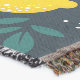 A quality printed throw has its advantages. This is a much finer weave throw than its loopier cousins, and though lighter, it is worth the investment for custom room accessorizing. The back is much prettier than the typical brown, and the fringe on the long sides very vivid, the selvage nicely done. Before photographing, I washed the throw in cold water, delicate, with a thicker woven throw the same size. On tumble dry low, this throw was dry in half the time as the other. This is a very practical quality if you use throws for furniture covers or to wrap up in frequently. The sleekness of the fabric makes it a great layer for accenting or protecting without the feeling of sitting on too much stuff. Perfect for napping or when you feel a light chill coming on. The color printing is beautiful and on this fabric, matched the design and color of my Photoshop image. This is an advantage for blending room fabrics and colors. The fringe on the short sides prints the colors from the design image and therefore varies from the side fringe. I streaked a white fractal line through the plaid pattern to give the illusion of weaving. This printed as crisp as an illusory thread, and put some white in the short side fringe, showing another advantage of print vs loomed- for artistic purposes, line lines, detail, and color integrity can be planned and preserved. My loomed throws have color limitations and more of a needlepoint texture. Print throws reproduce an exact image. The throw felt a little stiff straight out of the package, but this went away in the first delicate wash. Of course I searched the wash water for ink or bleeding and there was none.