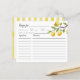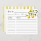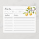 Whimsical rustic recipe card for your lemon theme bridal shower featuring watercolor illustration of a lemon tree branch with the citrus fruits. Ask your guests to fill out this recipe card and bring them to the bridal or wedding shower.