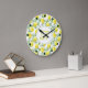 Lemon Tree Monogrammed Pattern Yellow Green Decor Large Clock