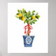 Decorate your home for the Holidays with this Personalised art poster featuring a watercolor lemon tree topiary in a blue and white vase.