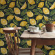 Infuse your home with the refreshing essence of a sunny lemon grove with our "Lemon Grove Delight" Peel & Stick wallpaper. Featuring a lively pattern of bright yellow lemons and lush green leaves set against a deep navy blue background, this design brings a cheerful and invigorating atmosphere to any room. The vivid colours and playful design elements are perfect for adding a burst of freshness to kitchens, dining areas, or any space that could use a touch of zest. Easy to apply and remove, this wallpaper offers a hassle-free way to brighten up your decor with a fun, summery vibe.