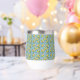 Sip in style with this lemon tile thermal wine tumbler, featuring a repeating pattern of yellow lemons, lemon blossoms, and Mediterranean blue tile accents. Inspired by vintage ceramics and countryside charm, this citrus design adds a cheerful touch to picnics, patio lounging, or post-yoga relaxation. Ideal for those who love French country, coastal, or summer-inspired aesthetics — wherever your unwind moment happens.