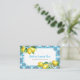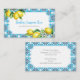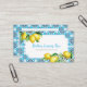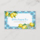 Blue Mediterranean tile makes a unique background and transport you to Positano, Italy on this bright business card. Branches laden with ripe lemons and lemon leaves reach out over the panel containing business information Great for lemon, citrus or garden-themed businesses. Available with matching products.