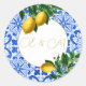 Lemon Wedding Blue Tile Monogram Summer Classic Round Sticker
