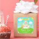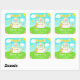 This cute and whimsical sticker features a blonde hair girl with fair skin at a yellow lemonade stand which is decorated with flowers and bunting. In the background is a blue sky, sunshine and butterflies. The text combines decorative and sans serif fonts for a stylish and modern look. This is perfect for a summer birthday party.