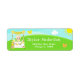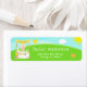 This cute and whimsical address label features a blonde hair girl with fair skin at a yellow lemonade stand which is decorated with flowers and bunting. In the background is a blue sky, sunshine and butterflies. The text combines decorative and sans serif fonts for a stylish and modern look. This is perfect for a summer birthday party.