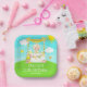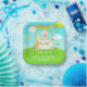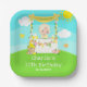 This cute and whimsical plate features a blonde hair girl with fair skin at a yellow lemonade stand which is decorated with flowers and bunting. In the background is a blue sky, sunshine and butterflies. The text combines decorative and sans serif fonts for a stylish and modern look. This is perfect for a summer birthday party.