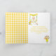 This cute and whimsical thank you card features a blonde hair girl with fair skin at a yellow lemonade stand which is decorated with flowers and bunting. In the background is a blue sky, sunshine and butterflies. The text combines decorative and sans serif fonts for a stylish and modern look. This is perfect for a summer birthday party.