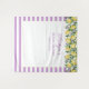 Fabric backdrop with watercolor lemons / leaves / purple blossoms and a lavender and white striped border. I have invitations and other stationery in the same design (please see collection).