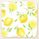 Lemons and leaves are painted with watercolor then a pattern is made in Illustrator.