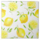 Lemons and leaves are painted with watercolor then a pattern is made in Illustrator.