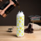 The bottle looks even better in real life. The ice cubes I put in lasts all day! I have my bottle with me all the time. It's summer and having something cold to drink feels amazing. With this bottle I always have something super cold. I have only tried the hot drink once and it lasted a long time as well. The color blue is a navy blue and the white printed on it is vibrant. It printed perfectly. I love my personalized smile water bottle.