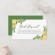 Ask guests to bring a book instead of a card with this citrus theme book request card. It features watercolor illustrations of lemons, oranges and foliage with a whimsical script. This lemon books for baby card is perfect for summer baby showers. Personalise by adding your own words. Matching items are available.