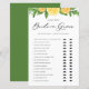 Guess who? Bride or groom? Add this fun and festive He Said, She Said game card to your event. It features watercolor garland of lemons, oranges and greenery with a whimsical script. Personalise by adding texts on the back of the card. This Bride or Groom game is perfect for summer bridal shower games and wedding shower games.