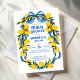 Lemons blue bow ribbon coquette bridal shower invitation template instant download, citrus lemons blue and yellow bridal shower invitation editable template; summer bridal shower invitations