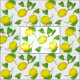 A soft and pretty citrus fruit fabric decorated with lemons in bright shades of yellow and green painted in watercolor.