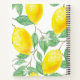 A college ruled notebook for your hobby and craft ideas. Juicy, delicious watercolored lemons in yellow, green and white. A label on front with templates for Your name and the book title. Green letters. The name is written with a modern hand lettered style script.
