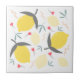 Lemons Floral Botanical Red Flowers Leaves Pattern Tile