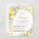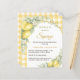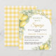 Celebrate your upcoming bundle of joy with this elegant lemon-themed baby shower invitation. Featuring a soft yellow and white gingham background, delicate watercolor lemons, fresh greenery and a bow, this design creates a warm and inviting atmosphere perfect for a summer or citrus-inspired baby shower.