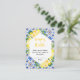 This fun and whimsical baby shower diaper raffle card features watercolor citrus lemons and foliage on a Mediterranean tile background. The text combines handwritten script and serif fonts for a stylish and modern look. This is perfect for a summer rustic baby shower.