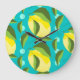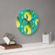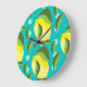 Lemons and leaves, dots of blue. Vintage pattern, a citrus hue.