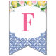 Lemons Amalfi Blue Tiles bunting banner flags. Shown here for a 50th birthday party but of course the lettering can be customised for a wedding shower or baby shower etc.