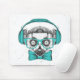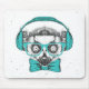 This design features a lemur dressed in teal eyeglasses and a bow tie listening to music with a headset.