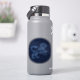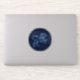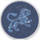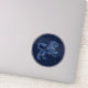 Sticker featuring the symbol for Leo in soft silver blue, overlaid with the stars of the constellation, against a starry sky background graded from deep midnight blue to black