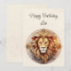 Birthday card for Leo featuring a digitally created image. The greeting can be changed, including substituting a name for the zodiac sign. AI assisted graphic purchased with commercial use. Artwork: DreamCafeArt