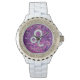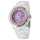 A pearl like Leo zodiac sign on digital camouflage pink purple fuchsia background. A modern urban girly style design for a great custom birthday fashion watch gift idea for her.