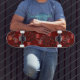 Leo the Lion astrological sign design for skateboard. Red lion heads against a gradient red background. Customisable text. Part of the Zodiac skateboard collection.