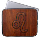Leo Symbol in Mahogany Wood Style Decor Laptop Sleeve