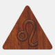 Leo Zodiac Sign in Brown Mahogany wood style Triangle Sticker