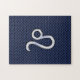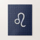 Leo Zodiac Sign on Navy Blue Carbon Fibre Print Jigsaw Puzzle