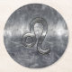 Leo Zodiac Symbol in Grunge Distressed Style Round Paper Coaster