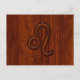 Leo Zodiac Symbol in Mahogany wood style decor Postcard
