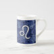Leo Zodiac Symbol on Navy Blue Digital Camo Bone China Mug