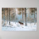 A charming winter landscape poster featuring an elk in the forest, painted by the Russian painter Muraviov Vladimir Leodinovich.