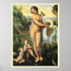 Leda and the Swan (1505-1510) by artist Leonardo da Vinci (1452-1519) is a vintage Renaissance Era fine art mythological portrait painting. A beautiful woman is standing next to a large, white bird, a swan and two young children are by her feet.