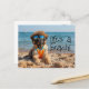 Leonberger puppy wearing sunglasses on the beach. A fun postcard. Message "Life's a beach!" can be removed or replaced with your own message.
