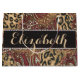 A Paisley pattern with leopard spot skin pattern with a black leather banner surrounded by diamond rhinestones (faux) that you can customise and personalise. Just change the name Elizabeth to any name you choose. Pattern colours range in black, brown, maroon, red.