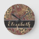 Leopard and Paisley Pattern Print to Personalise Round Clock